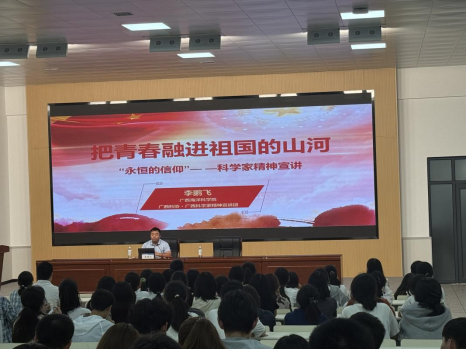 9月16日上午,广西科学家精神宣讲团专家、广西海洋科学院党委委员、副院长李鹏飞赴河南新乡,以《永恒的信仰——把青春融进祖国的山河》为题,为河南师范大学水产学院2025级新生讲授了一堂生动的专题思政课。