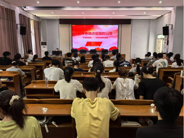 李鹏飞以老一辈科技工作者的报国感人事迹为主线,深刻阐释了中华民族在历史关口突破困境的精神源泉 —— 正是一代代科技人员以生命为炬、以智慧为刃的薪火相传,才铸就了今日中国的科技底气。他深情讲述了 “两弹一星” 元勋钱伟长、郭永怀等中国科学家的故事,他们始终将国家与人民利益置于首位,那些在艰苦岁月中胸怀 “国之大者”的坚守,让在场同学们深切感受到科学家精神的厚重分量。