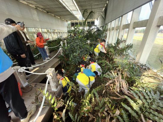 在基地的气候模拟温室里,孩子们挽起袖子,小心翼翼地将自己培育了一年小花老鼠簕幼苗,亲手种进土壤。