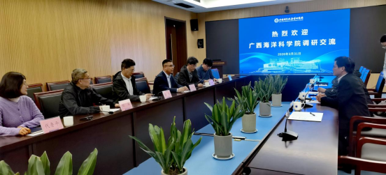 2026年3月31日,春暖花开之际,广西海洋科学院(广西红树林研究中心)党委书记戴圣生、副院长邱广龙、院长助理兼工会主席廖馨一行专程前往青岛,赴中国科学院海洋研究所开展调研交流,并看望慰问在该所进行访问学习的三位科研人员。