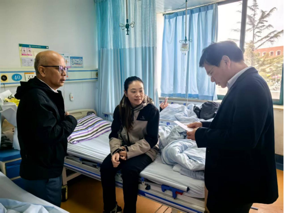 值得一提的是,在青期间,三位访问学者之一的蒙奕奕博士不幸因病住院。得知情况后,戴圣生书记一行第一时间赶往医院,亲切看望慰问蒙奕奕同志,详细询问病情和治疗情况,叮嘱她安心休养、积极配合治疗,并送上了组织的关怀与温暖。院领导的关心令蒙奕奕同志深受感动,她表示将争取早日康复,尽快重返科研岗位。